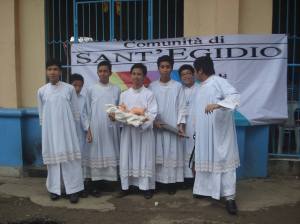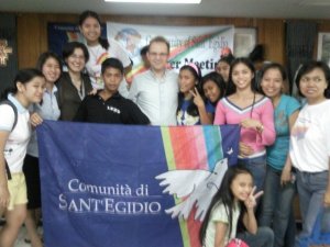 Don Paolo Cristiano (nelle foto in alcuni momenti della sua attività e nella prima a sinistra al centro con Riccardi) è un sacerdote da sempre impegnato nel sociale, responsabile di Sant’Egidio in provincia di Frosinone che segue anche alcune comunità in Asia, soprattutto in Pakistan e nelle Filippine. Ci aiuta a conoscere meglio una realtà che si distingue per le risposte che fornisce alle urgenze dei nostri tempi.